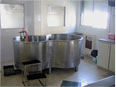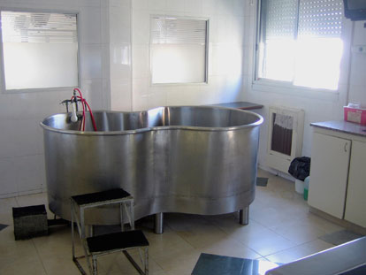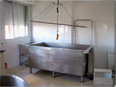 La sala de baños o balneoterapia es el área que se destina a este fin, su instalación incluye una cañería para llenado y desagüe rápido con agua a temperatura regulable y una ducha incluyendo un dispositivo para descontaminar el agua utilizada.